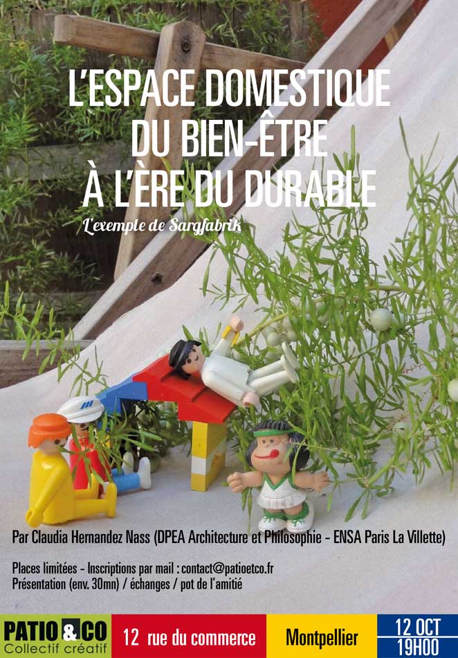 Je suis présidente de l'association « Patio & Co » fondé en 2009, ayant pour objectif premier de partager et de promouvoir l’architecture et l’urbanisme durables, en mettant en commun notamment des locaux professionnels et en organisant des conférences sur divers thèmes « Le pouvoir en partage », « L'espace domestique du bien être à l'ère du durable », etc… L’association est, notamment, à l'initiative avec l'association Semilla, de « L’opération Microfleurissement » d'une partie de la rue du Commerce.
