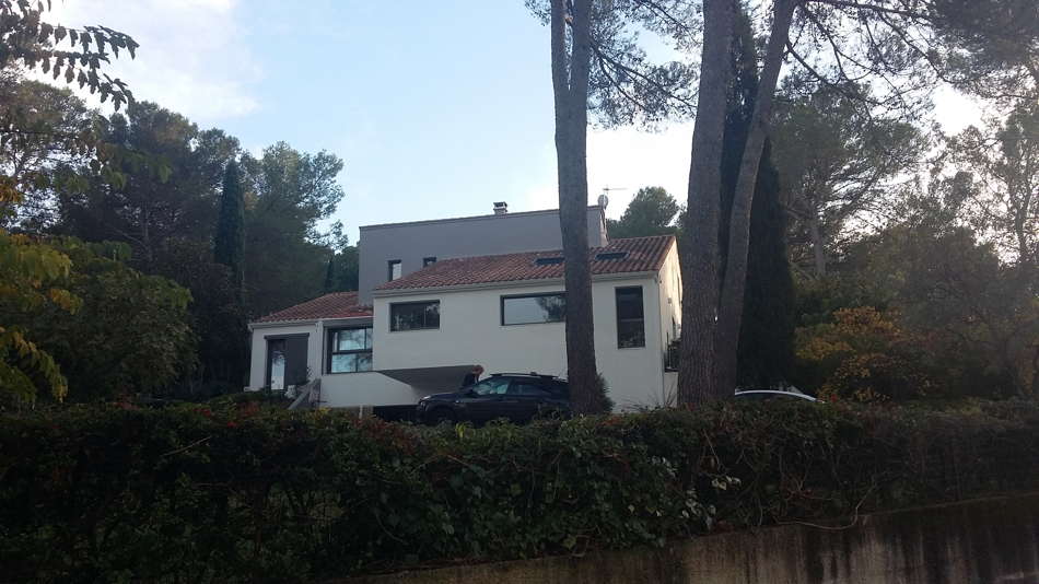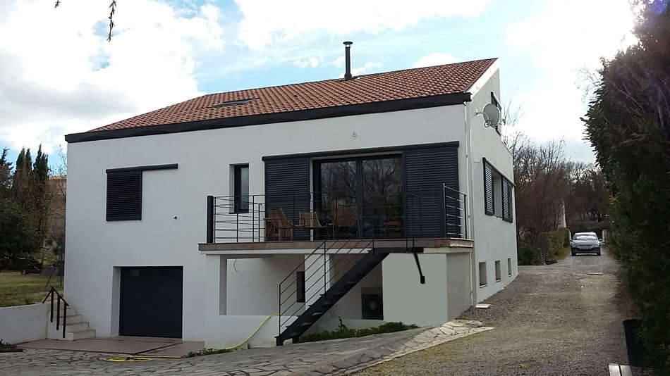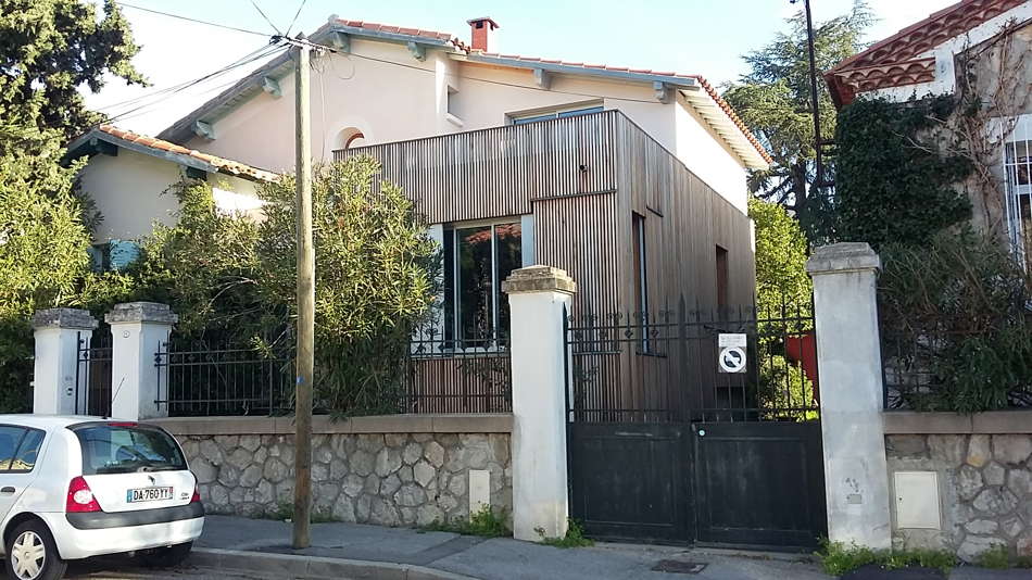 Réhabilitation et surélévation en ossature bois d’une maison des années soixante, située à Montpellier.