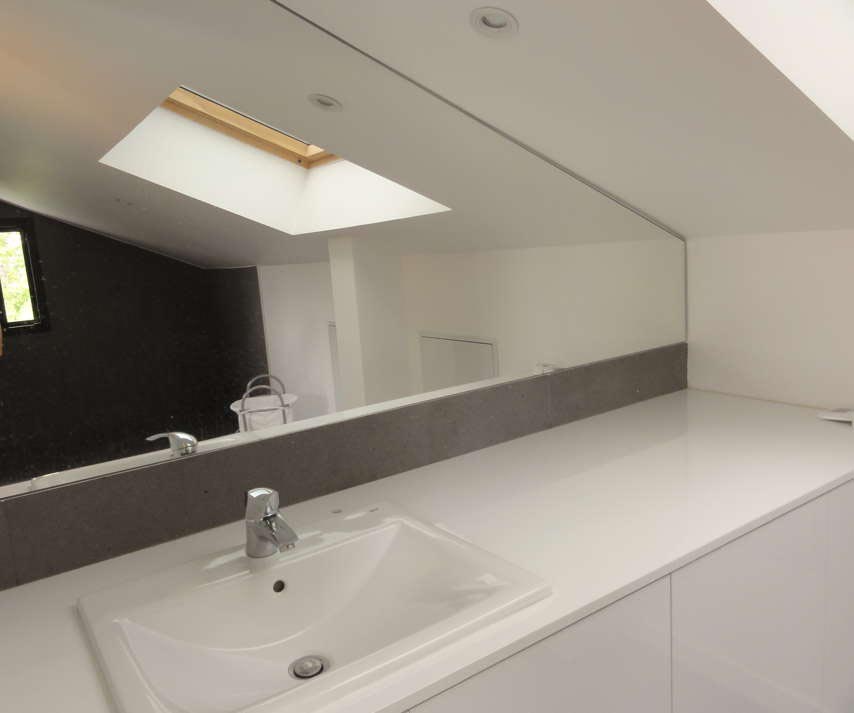 Rénovation exploitant au maximum le potentiel de surface existant, transformation du patio extérieur situé plein sud en salle à manger, transformation de la terrasse existante couverte au nord, en chambre à coucher, aménagement des combles.