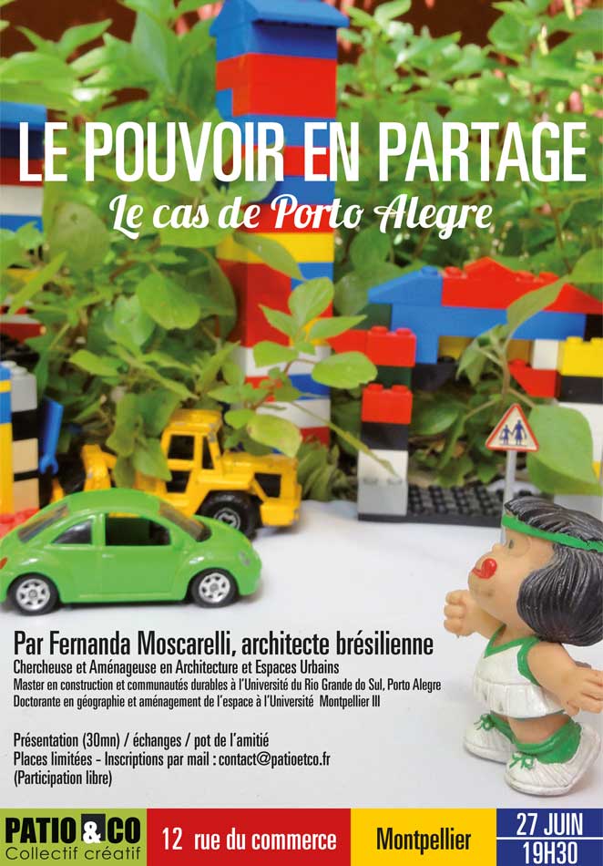 Je suis présidente de l'association « Patio & Co » fondé en 2009, ayant pour objectif premier de partager et de promouvoir l’architecture et l’urbanisme durables, en mettant en commun notamment des locaux professionnels et en organisant des conférences sur divers thèmes « Le pouvoir en partage », « L'espace domestique du bien être à l'ère du durable », etc… L’association est, notamment, à l'initiative avec l'association Semilla, de « L’opération Microfleurissement » d'une partie de la rue du Commerce.