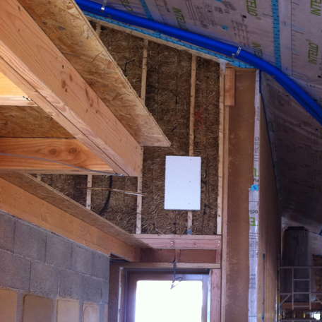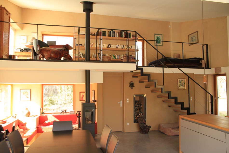Maison « passive » en ossature bois et isolation en paille, enduit terre intérieur