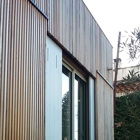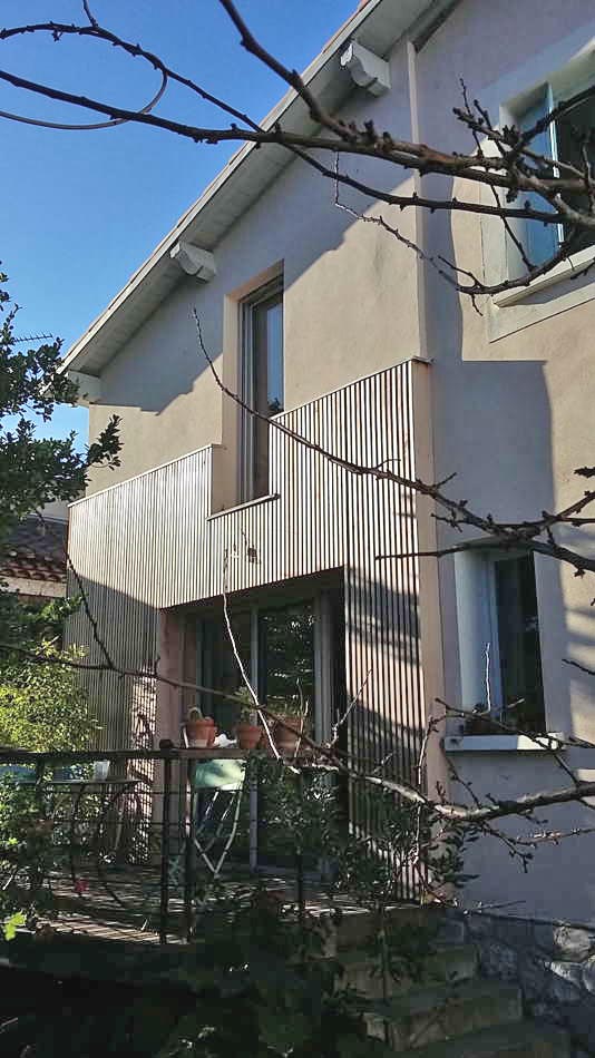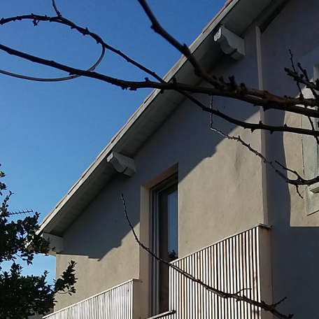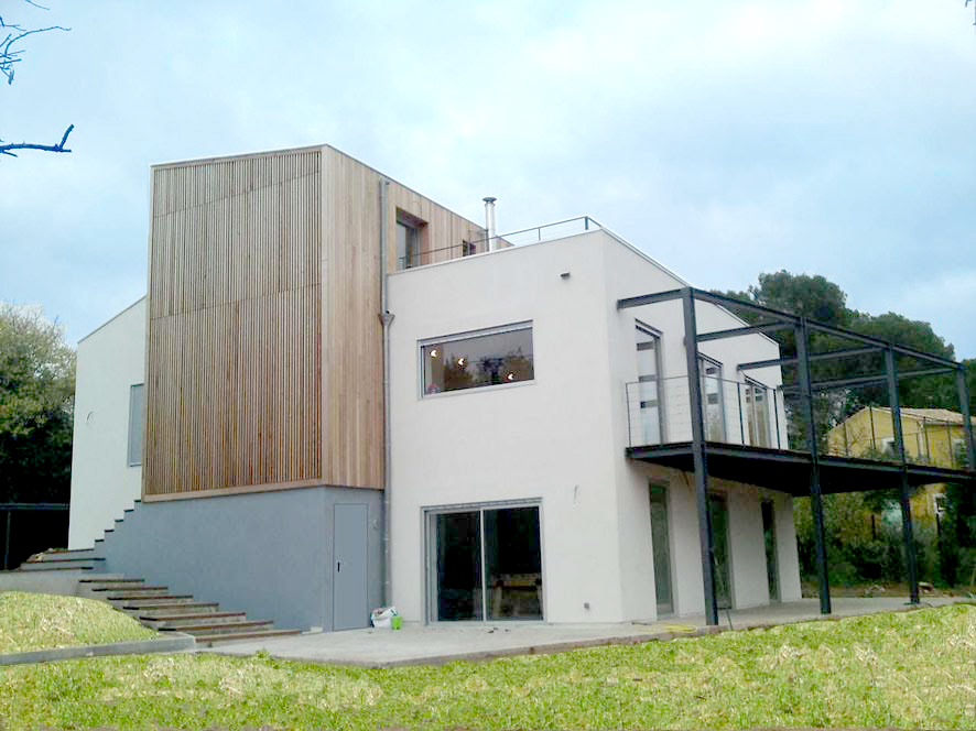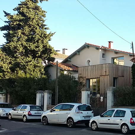 Réhabilitation et surélévation en ossature bois d’une maison des années soixante, située à Montpellier.